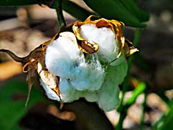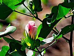 畑の片隅に、綿が植えられていました。花は、薄いピンク色で綺麗な色ですね。