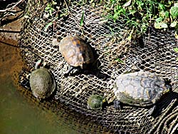 あまり綺麗ではない川には、亀が多数甲羅干しをしていました。刈り取りが終わった田圃には、サギが舞い降りていました。「鶴は千年亀は万年」おめでたい動物たちを写しました。