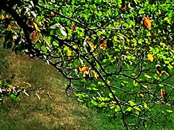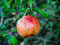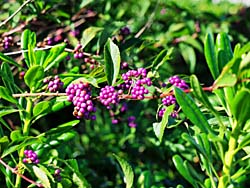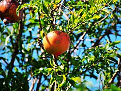 見上げると、石榴が赤くなっていました。ザクロを食べた記憶がありません。どんな味がするのでしょうか。足下には紫式部が、紫色の実を付けていました。