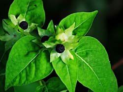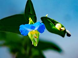 夏の夕暮れの名残の「オシロイバナ」が咲いていました。そして、オシロイバナの黒くて丸い種が出来ていました。露草も咲いていました。