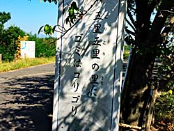 木津川の土手に、桜並木があります。ふるさと創生一億円で造られたとか。もうしばらくすると、落葉して冬支度の姿になるのでしょう。このあたりは、「五里五里の里(ごりごりのさと)」と呼ばれています。京都へ五里、奈良へ五里の中間点に城陽市はあります。「五里五里の里にゴミはコリゴリ」のという立て看板。