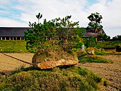 滋賀県近江八幡市に寄って、バームクーヘンで名高い「たねや」に立ち寄りました。屋根に芝生が植えられている面白い建物。夏は涼しいのでしょうね。樹木が屋根を突き抜けているところもありました。畑の所々に古墳のようなところがありました。バームクーヘンは、あまりにも人が並んでいたので買わなかったです。
