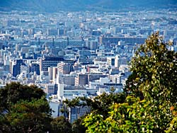 東山ドライブウェイに京都に居ながら初めて行きました。将軍塚展望台からの市街地の眺めです。これなら確かに夜景はきれいでしょう。デート・スポットなのがよくわかります。(動 画)