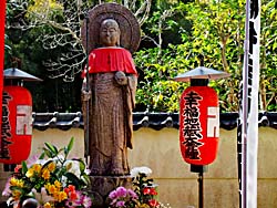 華厳寺その4です。庭園に三角形で2本の竹が接着したような竹が植わっていました。変形種の竹だそうです。「幸福地蔵大菩薩」で、どんな願いでも一つだけ叶えてもらえる草鞋を履いたお地蔵さんで、お願いすると自分の家まで、願いを叶えに来てくれるという有り難いお地蔵さんです。だから、草鞋を履いておられるのだそうです。