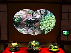 地蔵院その4です。枯山水の庭園がありますが、「十六羅漢の庭」と呼ばれています。(動 画) その庭には、椿の名木「胡蝶侘助」があります。(写真左) 茶室には、「猪目窓」というハート形の窓があります。宇治田原町にある風鈴で知られている「正寿院」にもハートの窓がありましたね。