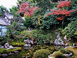 華厳寺の近くに、臨済禅宗の「衣笠山地蔵院」があります。地蔵院は竹林が美しいところですが、今の時期は紅葉もきれいな寺院となっています。