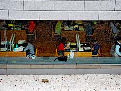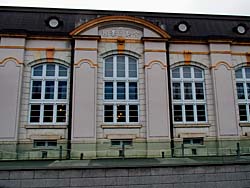 京都市左京区岡崎にある「京都府立図書館」です。京都図書館という文字や建物には、歴史を感じさせるものです。覗き込むとドライエリアがあり閲覧室を見ることができました。