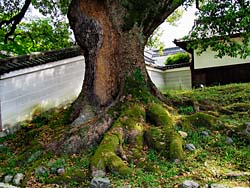 京都市東山区にある天台宗「青蓮院門跡」です。着くと目に入るのはクスノキの巨木です。ガッシリと地面を掴んでいる根は力強さに溢れていますが、目を上げると枝がほとんど伐採されていました。