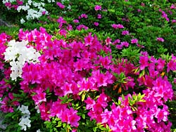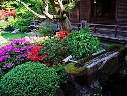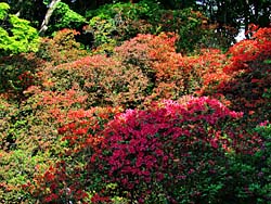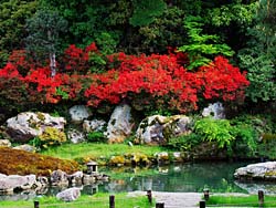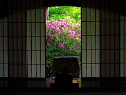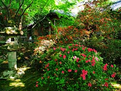 青蓮院小御所前に「相阿弥」の作と伝わる、瀧心池を中心とした庭園が広がっています。霧島ツツジが、ところどころに点在していて彩りを添えています。(動 画)