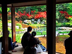 小御所からは、このように庭園が見られます。障子を少し開かれています。自然の掛け軸ですね。三十六歌仙の絵が掲げてありました。そう言えば、詩仙堂にも三十六歌仙の絵がありました。