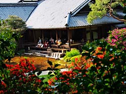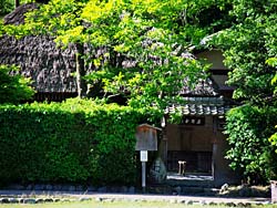 「柿ぬしや梢はちかきあらし山(去来)」の向井去来の別荘だった「落柿舎」です。松尾芭蕉が1691年(元禄4)4月18日より5月4日までここに滞在して「嵯峨日記」を著したところとしても有名です。