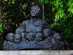 豊臣秀吉の寄進の一文字という手水鉢です。(写真左) 高さ24m、幅50mという知恩院の三門です。(写真中央) 三門の先に「師弟愛の像」があります。(写真右)1934年9月21日室戸台風の上陸で京都は暴風雨となり小学校が倒壊し担任の先生が、児童をかばい殉職されました。昔、母親からこの話を聞かされた記憶があります。そう言えば、鶴田浩二主演の映画「聖職の碑(新田次郎原作)」を見たことがあります。この映画も師弟愛が描かれていました。現在の学校でも、このような先生ばかりであることを・・・・