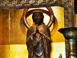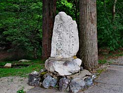 開祖の弾誓上人の石廟です。この岩窟は、入定される一年前に修行僧に掘らせたものです。上人は、穀断ち・塩断ちして松の実、松の皮を食べて体質を樹脂質化して、石棺の真下に掘ってある二重の石龕(せきがん)に入り「ミイラ佛」になられました。明治15年に石棺に収められました。現在でも、ミイラ佛として端坐合掌の相で安置されているそうです。