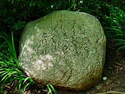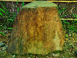 竹林の道のところどころに、小倉百人一首の和歌が刻まれた自然石があります。その中から3点。写真左から「白露に風の吹きしく秋の野はつらぬきとめぬ玉ぞ散りける(文屋朝康)」、「これやこの行くも帰るも別れては知るも知らぬも逢坂の関(蟬丸)」、「秋の田のかりほの庵の苫を粗みわが衣手は露にぬれつつ(天智天皇)」
