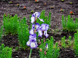 圃場で咲いていた左から、シソ科の「サルビアプラテンシス」、ユリ科の「チャイブ]です。そして、圃場から眺められる十勝岳連峰ですが、残念ながら山頂付近は雲に隠れています。