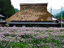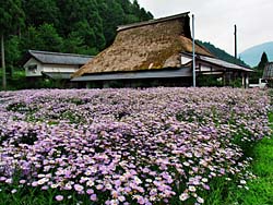 京都市左京区久多宮の町という山里に「北山友禅菊」が、見頃という情報を得たので行ってみました。休耕田を利用して、紫色の友禅菊が植えられています。栗も小さなイガを付けていました。