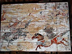 明王院の境内に入ると、このような石段があり上ると本堂がありました。無人で本堂内は暗く本尊などは拝観することはできません。壁には額が掲げてあり内容からして年代物だと思われます。