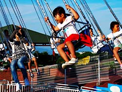 遊具その2です。90%は円形にクルクル回る乗り物です。比較的小さな面積で作れるのがメリットですが、対象が子供たちになってしまいます。夏の風物詩のお化け屋敷もありました。