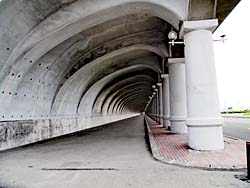 稚内に移動して、「稚内港北防波堤ドーム」を見ました。案内板によると「この防波堤は、戦前、稚内~樺太定期船発着所として建設されたもので、アーチ型構造物として立案され昭和6年に着工し、昭和11年に完成したものであるが、激浪のため老朽化が進み、昭和53年に改修を実施、昭和55年に完成。古代ローマの柱廊を思わせる独特の外観から通称ドームと呼ばれ世界で唯一のものである。」とありました。ドームの向こうは宗谷海峡が広がっていました。(動 画)で見てください。