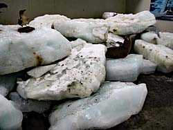 宗谷岬の沖にこのような岩礁が見えます。土産物屋ですが三角屋根には、年月日、時間、気温、北緯45度31分22秒がわかるようになっています。店内に流氷が保存されている室内に入ることができました。
