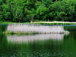 北海道らしい原生林に囲まれた小さな湖が「姫沼」です。周囲約800m、深さ約2mの人造湖です。1917年に利尻山の湧き水を堰き止めたことにより、当時3つあった小さな沼が一つになりました。そして、ヒメマスを放流したので姫沼と名付けられました。