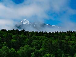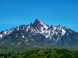 利尻山のアップ写真です。こうして見ると、山頂部分は北アルプスの槍ヶ岳にソックリですね。小槍もあるので槍ヶ岳の写真と言われたら、何の疑いもなくそのように思います。(動 画)