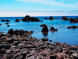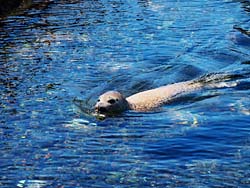 「オタトマリ沼」から東へ6km程行くと、利尻・礼文・サロベツ国立公園の「仙法志(せんほうし)御崎海岸」があります。岩がゴロゴロした海岸で、岩の上にはカモメが羽を休めていました。アザラシが飼育されていました。なかなか可愛いものです。