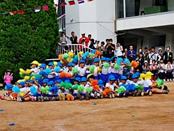 定番の「玉入れ」と「組み体操」です。そして、運動会が終わったら担任の先生から、メタルとプレゼントを一人一人貰っていました。このへんが幼稚園の運動会ですね。