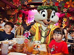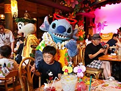 ショウタイムがあるレストランに入ると、ミッキーマウス等が客席までやって来て、ハイタッチしたり写真を撮ったりしてくれます。