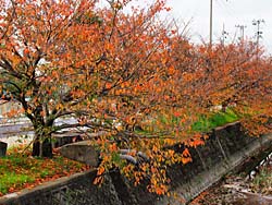 散歩道の風景を撮しました。秋と言えば柿ですね。沢山の実を付けていました。嫁付川の桜並木は、紅葉しています。田圃には、稲木がありました。近頃は、コンバインで刈り取るところが多いので、稲木がメッキリ少なくなりました。