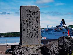 10月2日の続きの北海道・利尻島の沓形岬です。灯台、サハリン(樺太)まで108km、青森まで480km、礼文島まで12kmなどの案内板がありました。サハリンまで108kmと近いのですね。時雨音羽の「どんと どんと どんと波乗り超えて・・・・」と歌われる「出船の港」歌碑がありました。時雨音羽は、利尻島の出身の作詞家で、君恋し、スキー、鉾をおさめて等の作品がヒットしました。