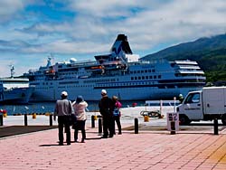 稚内港からフェリーで利尻島に行きました。鴛泊港から見た「ペシ岬」です。「姫沼」に行きました。駐車場から吊り橋を渡って姫沼に行きます。