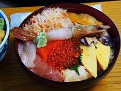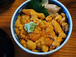 沓形港からフェリーで礼文島・香深港に移動しました。昼食に出た「ウニ丼」と「海鮮丼」です。さすが海産物の宝庫の礼文島ですね、ウニが山盛りです。