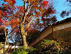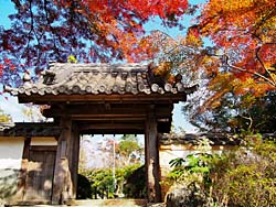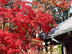 山門に続く参道にもモミジがありましたが、全く美しくありませんでした。この寺院によく来る人によると、台風の被害でこの年は全くダメでそうで、いつもなら京都・奈良よりここは美しいところだということでした。山門や周辺の土塀も荒れていて廃寺のような雰囲気が漂っていました。