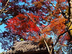 茨木市にある「大門寺」に、紅葉を見に行きました。句碑があり「ありがたや もみぢ浄土の 大門寺」とありました。モミジの名所のようです。寺院に向かう石段は屋根瓦が使ってあります。