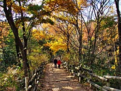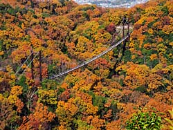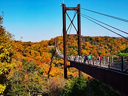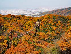「星のブランコ」の全体が、望める展望台があるということで山道を登りました。紅葉の中に星のブランコが眺められました。 (動 画)
