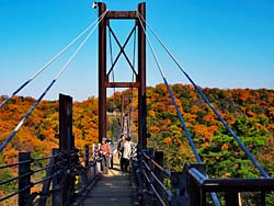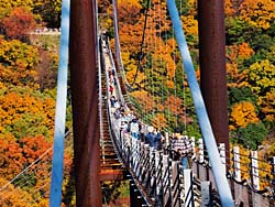 ほしだ園地のメイン施設である「星のブランコ」と呼ばれている吊り橋です。全長280m、最高地上高50mあります。幅員は1.2mで大勢の人が歩くと、それなりに揺れて結構スリルがあります。(動 画)