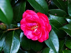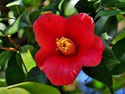 城南鳥居から神苑(楽水園)に入りました。(600円)入ってところが、「春の山」で始めに目に飛び込んできたのは、紅白の「薮椿」でした。
