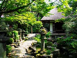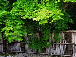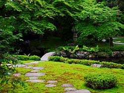 下鴨別邸の主屋の前に広がる庭園です。全体に苔を覆われて下鴨神社を流れる泉川から水を取り入れた、ひょうたん型の池が作られています。庭園を散策することができます。