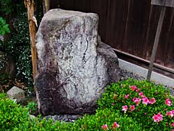「行く春を 近江の人と 惜しみける」 松尾芭蕉の句碑がありました。(写真左) 翁堂です。(写真中央) 佐渡の赤石がありました。寄贈があったそうです。(写真右)