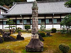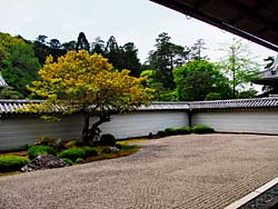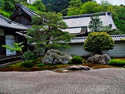 南禅寺に戻って、名勝の方丈庭園の他にも庭が数多くあります。子方丈庭園で「如心庭」と呼ばれています。心の字に庭石を配した昭和41年作庭の枯山水です。(写真:左) 六道庭で昭和42年の作庭です。(写真:中央)そして、「鳴滝庭」です。(写真:右)