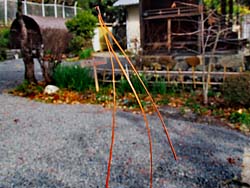 よく行った散歩道を久し振りに歩いて見ると、何とこのような道路が出来ています。「土筆」がたくさん芽を出す野原も道路建設で、破壊されたのかと思ったのですが無事ありました。この寒い中、3本の「土筆」が顔を出していました。小雪がチラつく寒い日でしたが、季節は春に向かって動いていました。