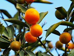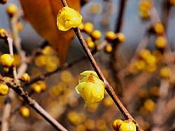 梅は、まだ蕾は堅いようです。ロウバイは今が盛りと咲いていました。キンカン(だろうと思います。)も、きれいなオレンジ色になっていました。