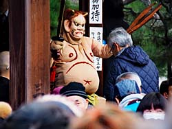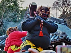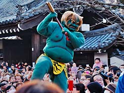 京都市上京区の京都御苑の傍に「廬山寺(ろざんじ)」があります。2月3日は節分祭で多くの参詣者が訪れます。写真は、鬼に体の悪いところを刀で突いてもらって健康を取り戻すという、「鬼の御加持」という儀式がありました。一人ずつ僧侶の読経と共に行うこの行事、鬼も大変ですね。(動 画)