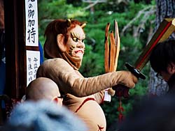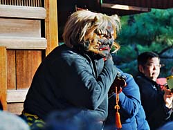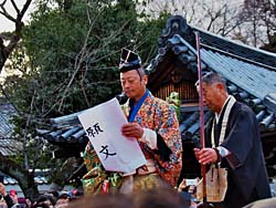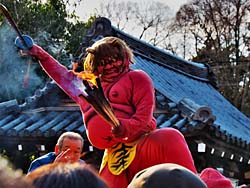 三匹の鬼が、散々踊りまくった後、願文を読み上げ矢を放って鬼を退散させた後に、豆まきが行われ一連の行事が終了しました。その間、約2時間15分寒い中立ちっぱなしは、なかなか辛いものでした。