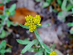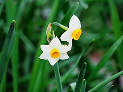 恵心院に咲いていたのは、「ロウバイ」(写真左)、「ミツマタ」(写真中央)、そして松の根元にひっそりと咲いていた「スイセン」(写真右)です。