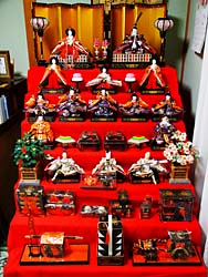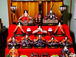 「あかりをつけましょ雪洞に お花をあげましょ 桃の花・・・・」 雛人形を飾りました。ちょっと違和感がありませんか。そうです!!お内裏様とお雛様の位置が違います。京都では、向かって右側に殿、左側に姫を飾ります。これは京都御所の紫宸殿の御即位の式典に由来し、太陽が先に当たる側が上の位、「左をもって尊し」という古来の風習によります。そして、4月3日まで飾ります。