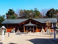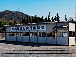 何かと話題になる大相撲の貴乃花部屋がこの神社内にあります。3月11日から始まる春場所(大阪場所)の宿舎がここなのです。土俵は、このようなプレハブで中には神棚や鉄砲をする柱も作られていました。行ったときは14時過ぎだったので誰もいませんでしたが、朝稽古のある7時頃には見物人や報道陣で混雑するのでしょう。何故大阪から遠い宇治にあるのでしょうか。