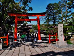 京都市伏見区にある「城南宮」の梅が見頃になっているとのことで、出掛けました。境内末社の芹川神社の梅です。紅・白の梅が今が見頃と咲き誇っていました。