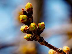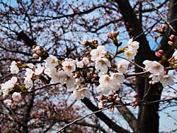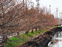 今日の嫁付川のソメイヨシノです。蕾が膨らんできました。ところどころで咲いていました。チラホラ咲きではなくて、チラ咲きというところでしょうか。